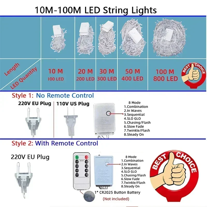 5M-100M Led Christmas Lights Outdoor led Fairy String Lights for Tree Ramadan 2025 Party Holiday Wedding Garland Decoration