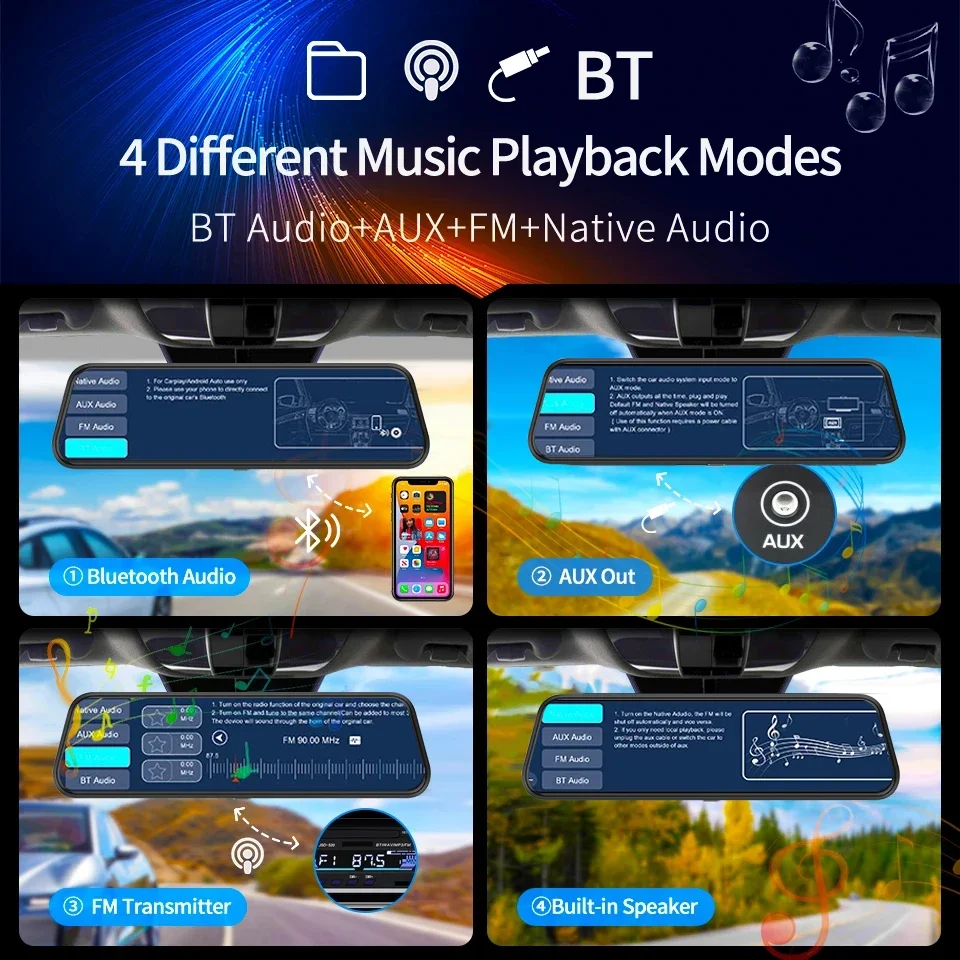 مرآة سيارة DVR مقاس 10 بوصات بدقة 4K وكاميرا مراقبة خلفية بدقة 1080 بكسل ونظام تحديد المواقع العالمي (GPS) وواي فاي