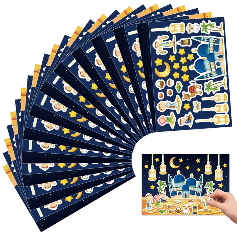 12 قطعة من ملصقات عيد مبارك DIY للأطفال هدية لعبة ألغاز ألعاب إسلامية لوازم حفلات رمضان 2025 ديكور منزلي ملصق حائط