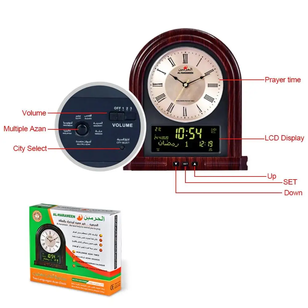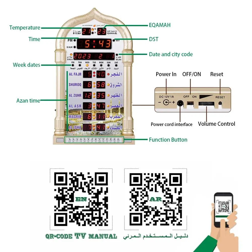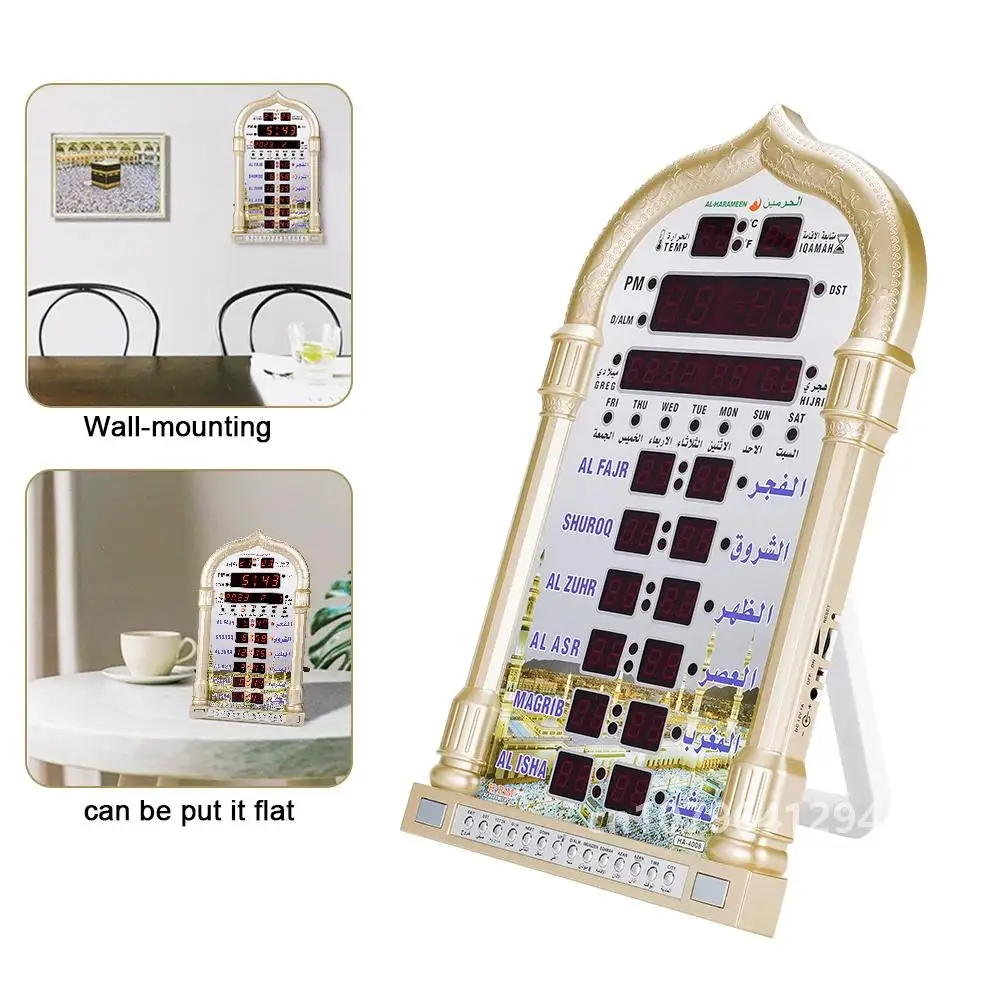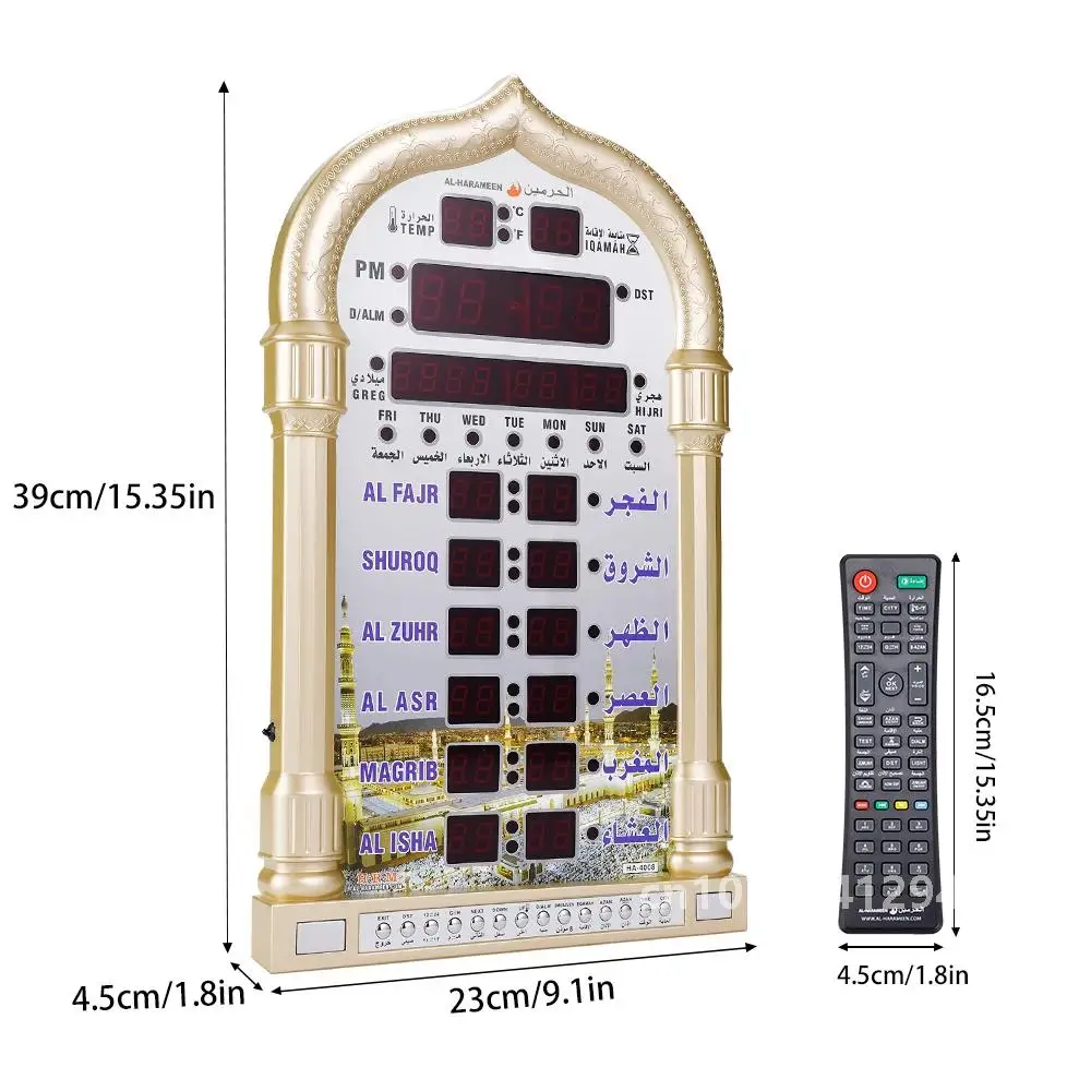 ساعة صلاة مسجد 12 فولت تقويم أذان المسجد الإسلامي ساعة حائط منبه للصلاة الإسلامية ديكور منزلي رمضاني مع جهاز تحكم عن بعد