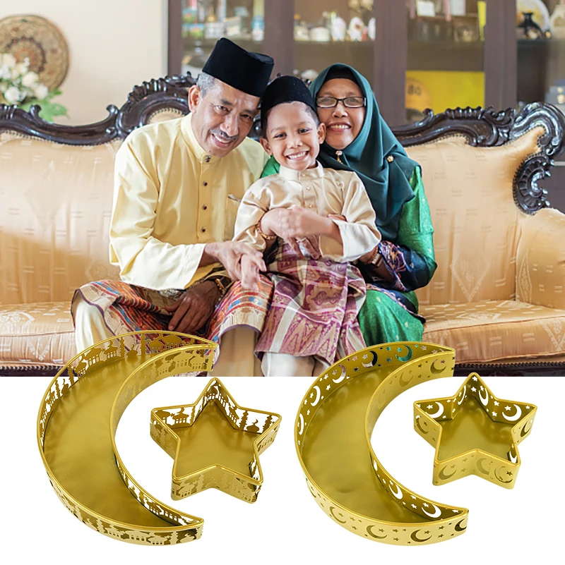 2/3 قطع صينية طعام عيد مبارك سلة فواكه رمضان كريم صينية تقديم طعام على شكل نجمة قمرية ديكور حفلات إسلامي هدية عيد الأضحى