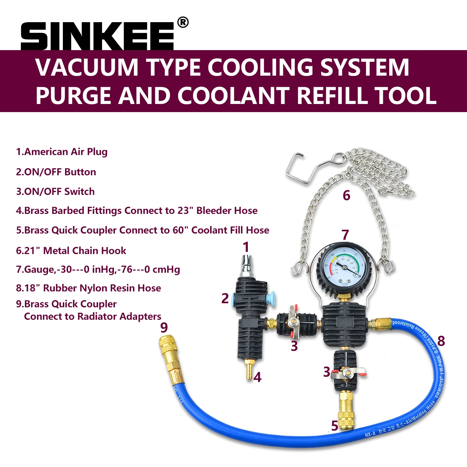 مجموعة مضخات تبريد السيارة المكونة من 3 قطع، مجموعة مبرد السيارة العالمية، نظام التبريد الفراغي، حاقن مانع التجمد، أداة ضغط الفراغ