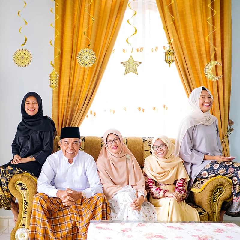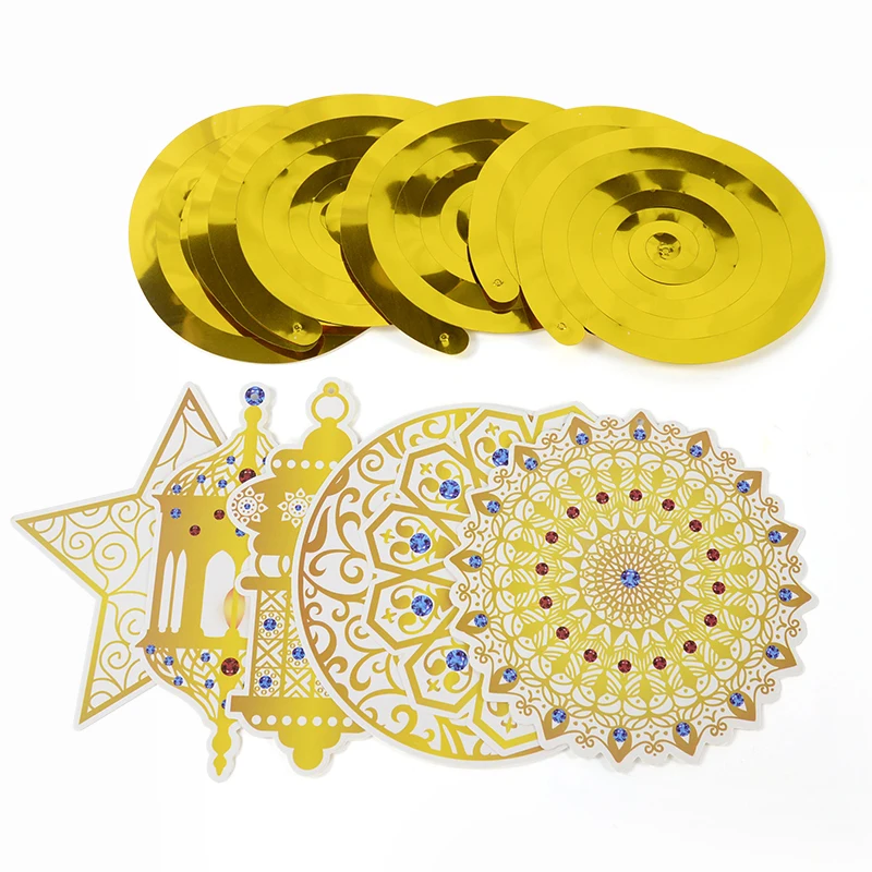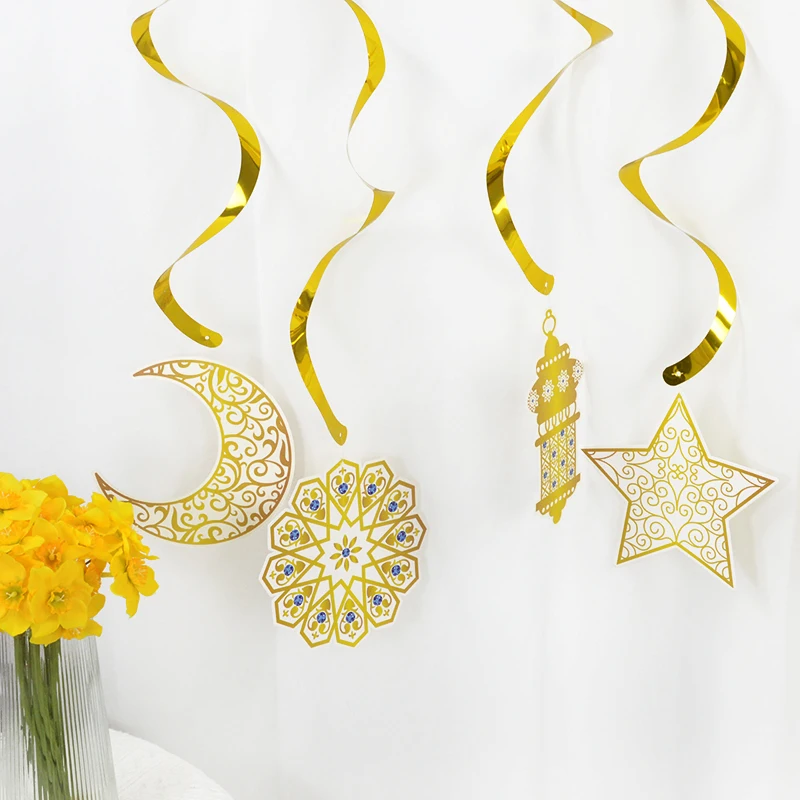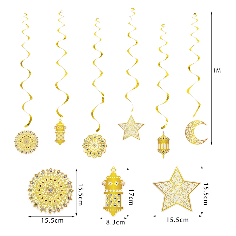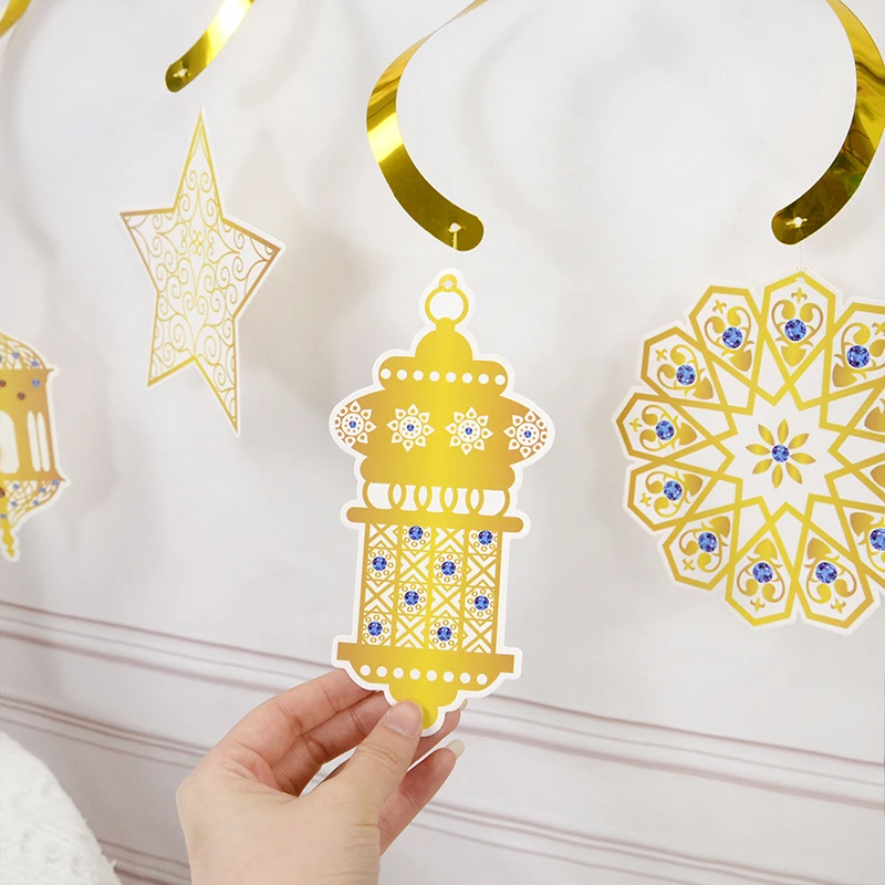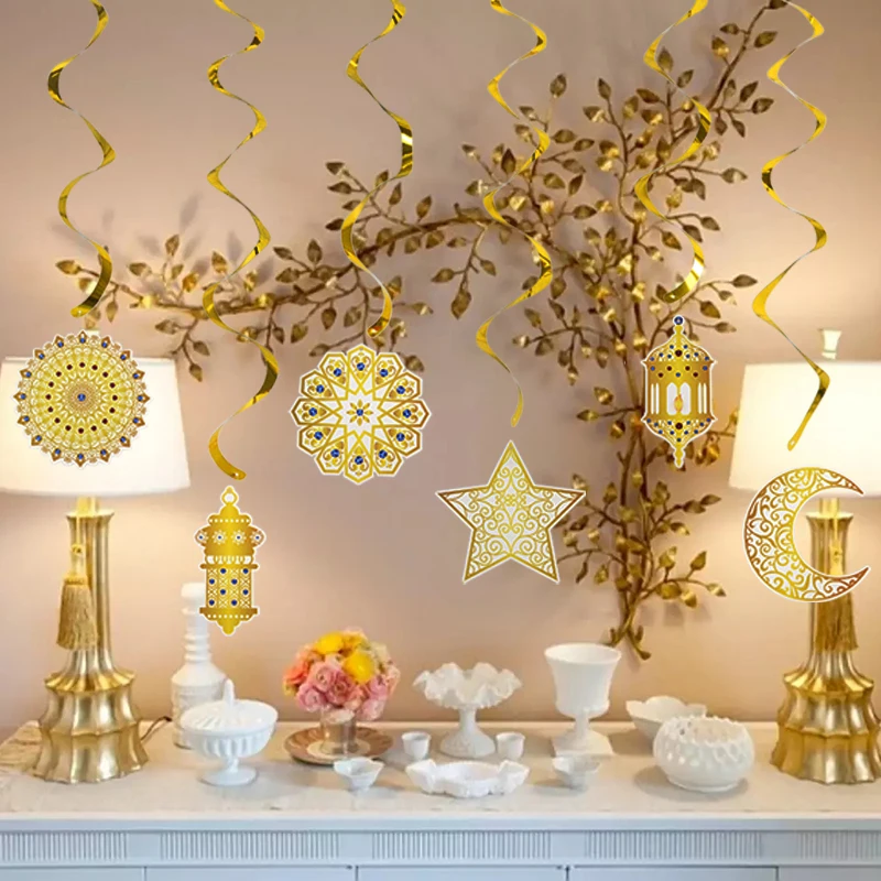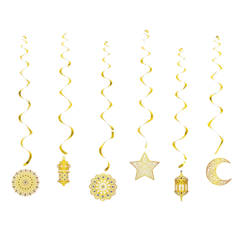 6 قطع من لافتات عيد مبارك الذهبية الحلزونية، قلادة عيد مبارك، لافتة إسلامية للحج، رمضان مبارك، مهرجان، ديكور منزلي للحفلات
