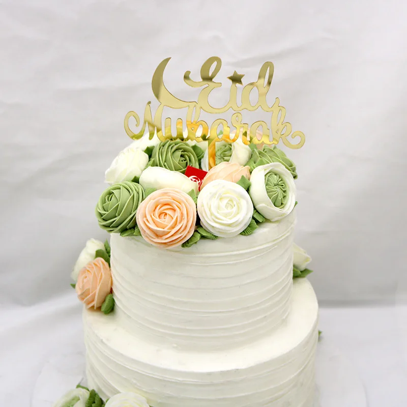 زينة كعكة عيد مبارك من الأكريليك، مرآة ذهبية، زينة كب كيك رمضان، علم، زينة كعكة عيد مبارك، زينة كعكة عيد المسلمين، حفل استقبال مولود جديد