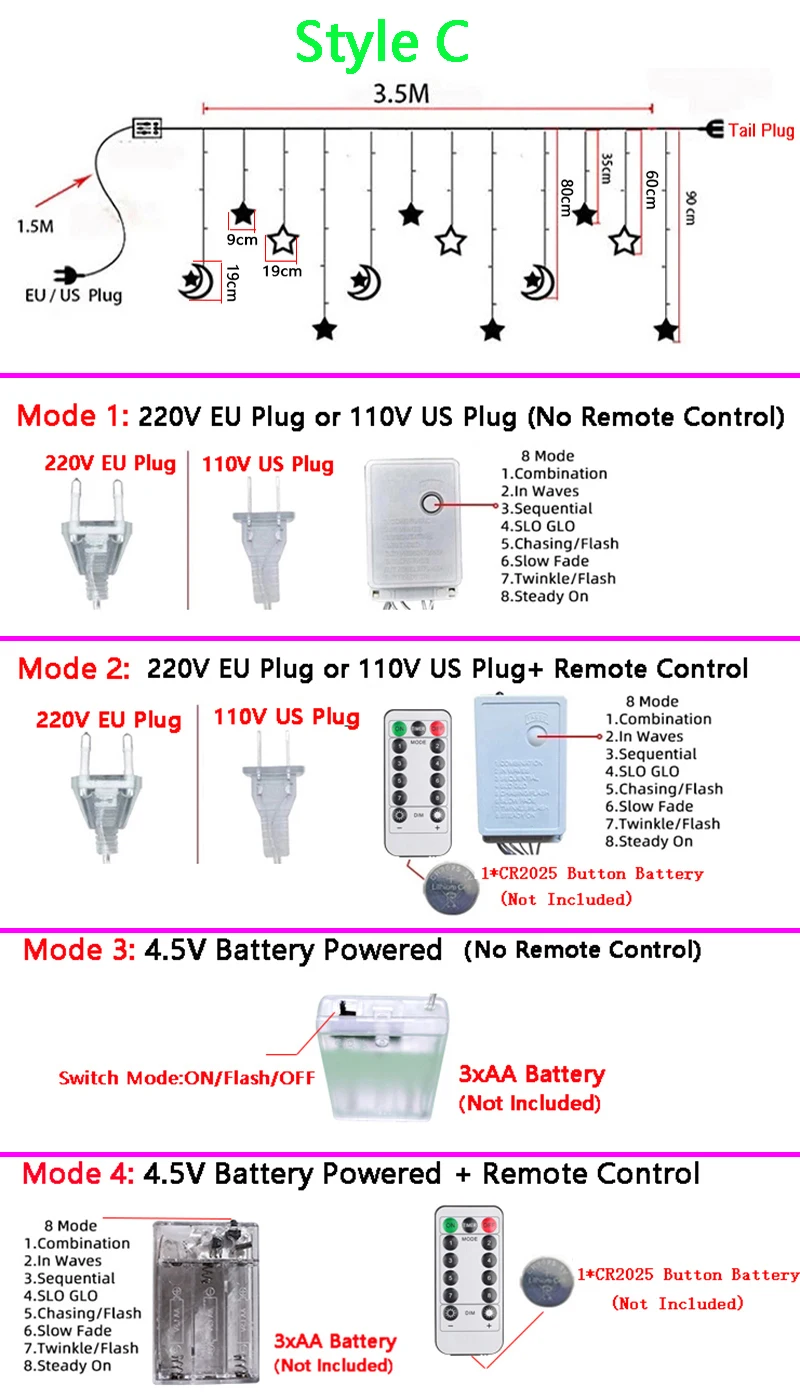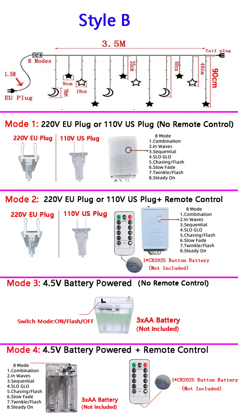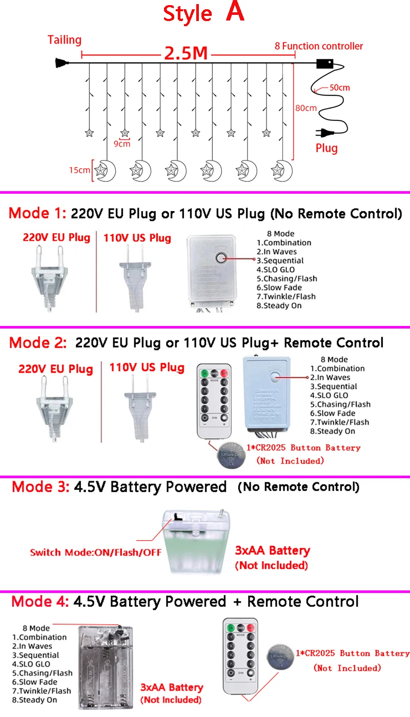 نموذج بطارية جهاز التحكم عن بعد: 1* بطارية زر CR2025 (غير متضمن)