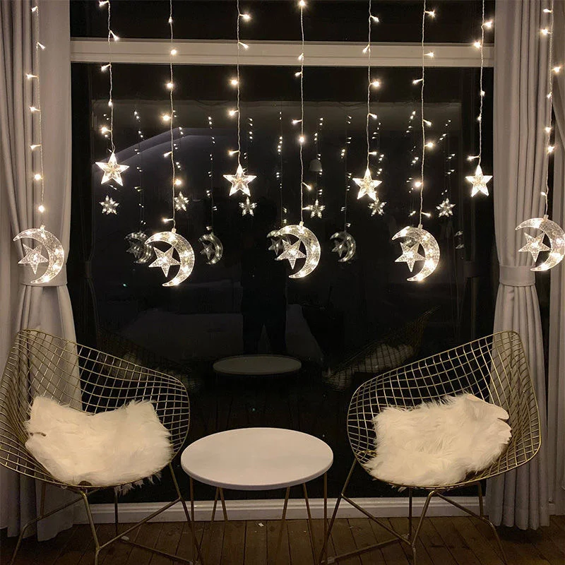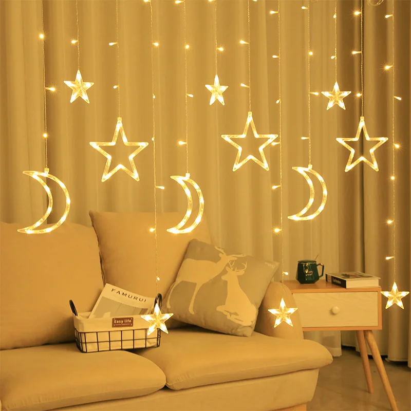 زينة عيد مبارك رمضان، ستارة من ضوء LED على شكل قمر ونجمة، مستلزمات حفلات إسلامية ومسلمة 2024، ديكور غرفة المنزل