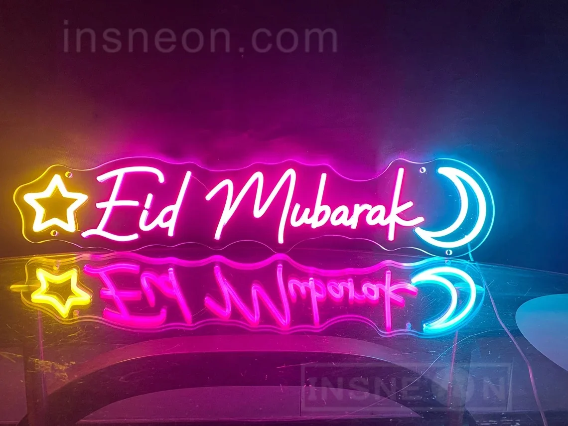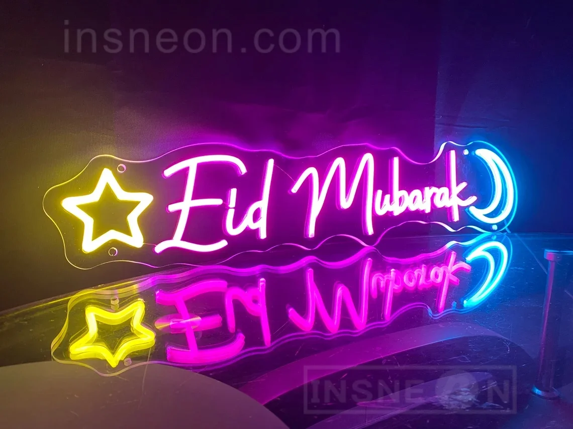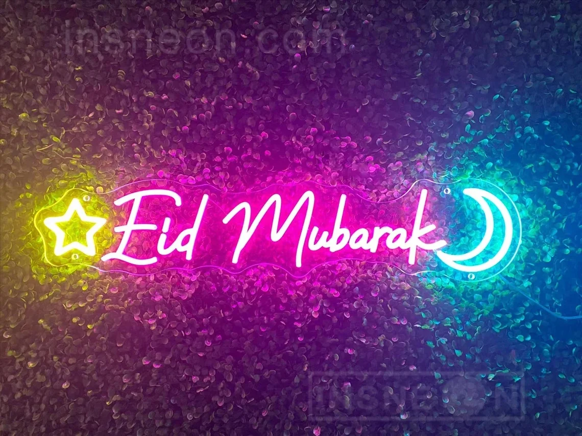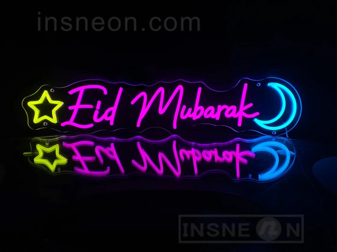 لافتة نيون لعيد مبارك، لافتات نيون للمهرجان، إضاءة ليد، ديكور حائط غرفة النوم، ديكور حفلات المهرجان، هدايا إسلامية، فن النيون