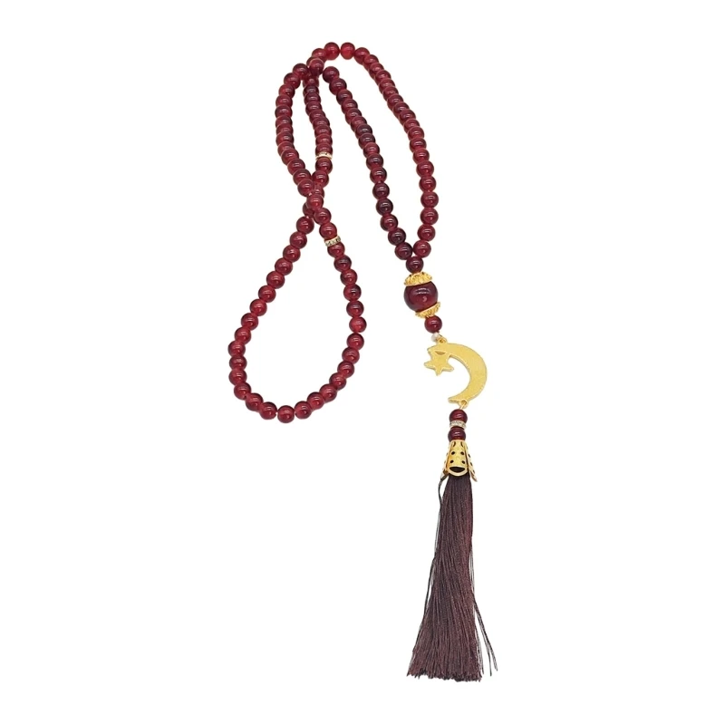 يبلغ طول قلادة المسبحة الإسلامية المصنوعة يدوياً 16.5 بوصة.