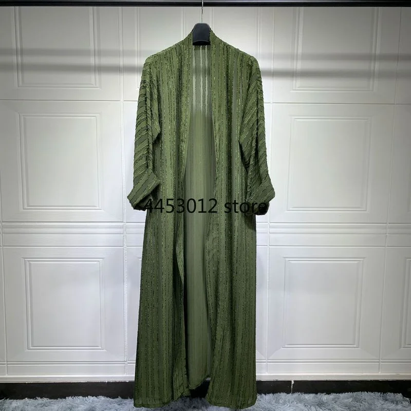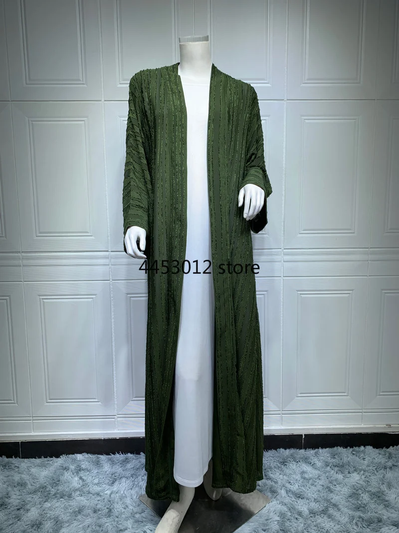 عباية كيمونو مفتوحة من الجاكار باللون الأخضر للنساء المسلمات، ملابس إسلامية، دبي، رداء سعودي، ملابس تركية محتشمة، ملابس خارجية، قفطان