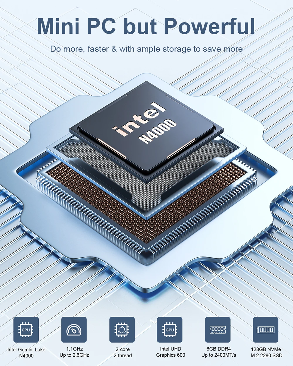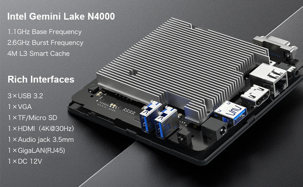 جهاز كمبيوتر صغير M2 Air بمعالج Intel Celeron N4000 ونظام تشغيل Windows 11 وذاكرة وصول عشوائي (RAM) سعة 6 جيجابايت وذاكرة قراءة فقط (ROM) سعة 128 جيجابايت وواي فاي ثنائي النطاق ومنفذ HDMI وVGA وجهاز كمبيوتر صغير محمول بتقنية BT4.2