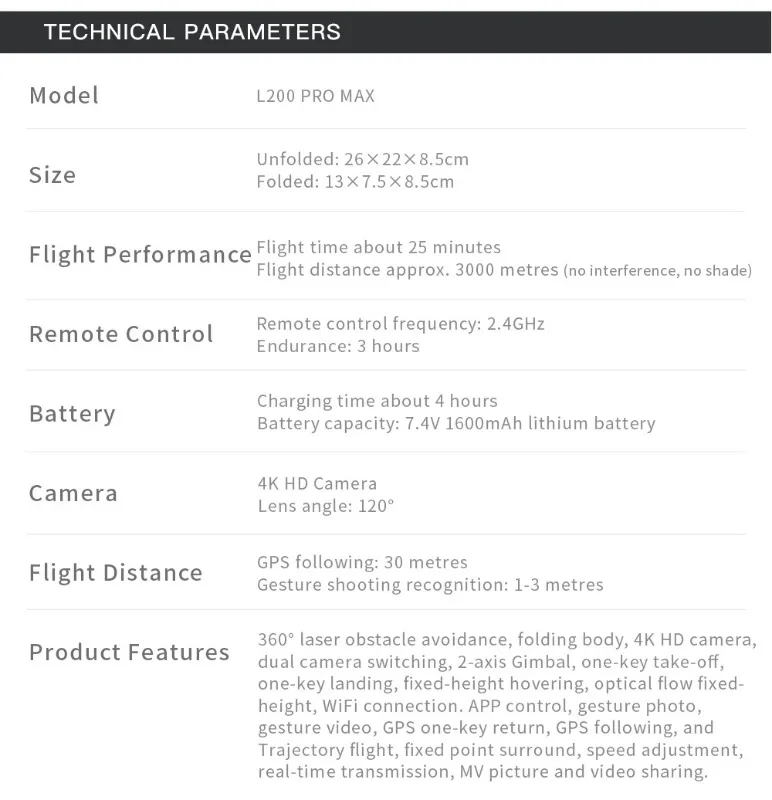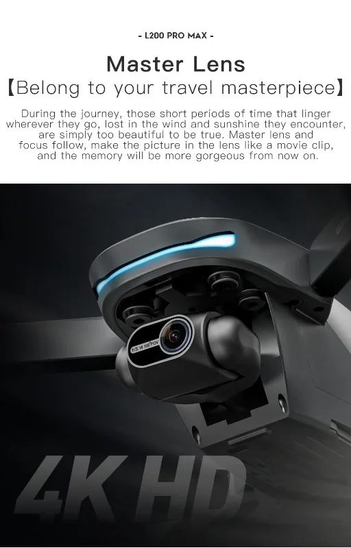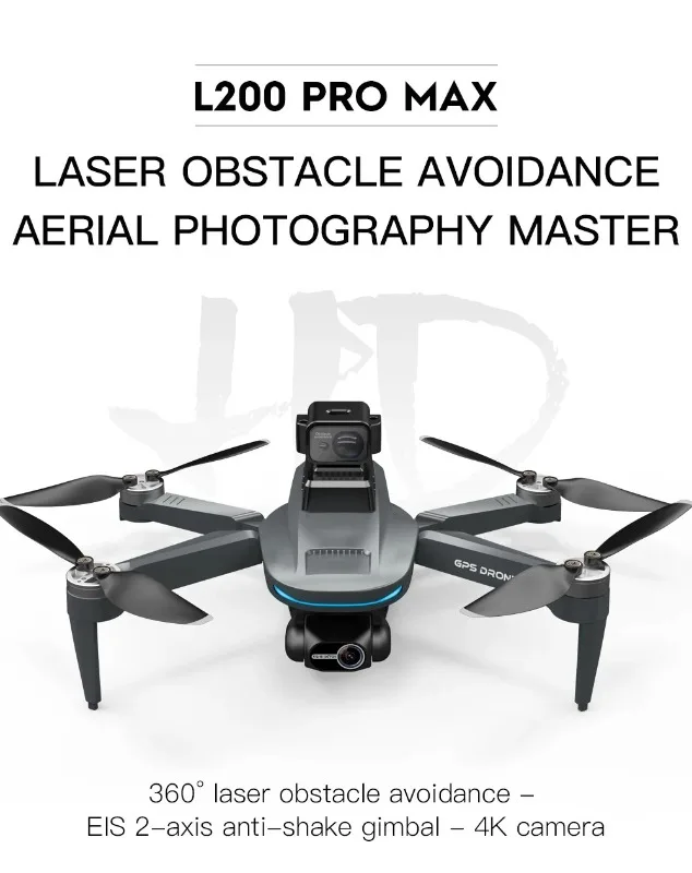 طائرة بدون طيار L200 PRO MAX الجديدة ذات المحورين Gimbal 360° ومحرك بدون فرشاة وتقنية تجنب العوائق بدقة 4K وGPS وطائرات رباعية المراوح FPV وطائرات بدون طيار RC ولعبة