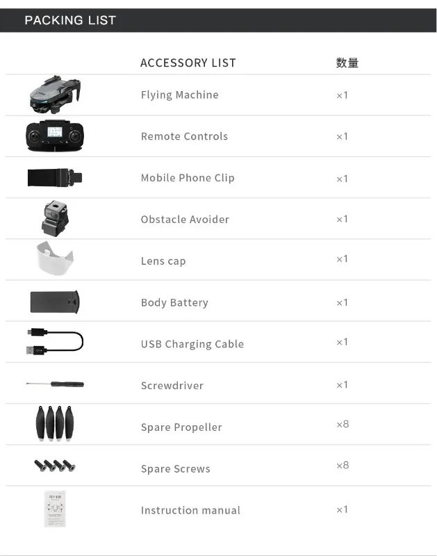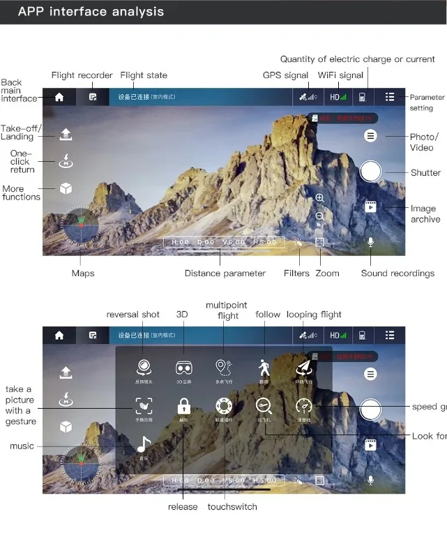 • سمات: يتم التحكم فيه عن طريق التطبيق، والعودة التلقائية، واتباعي، ونظام تحديد المواقع العالمي (GPS)، والكاميرا المدمجة، وتجنب العوائق، وشبكة Wi-Fi