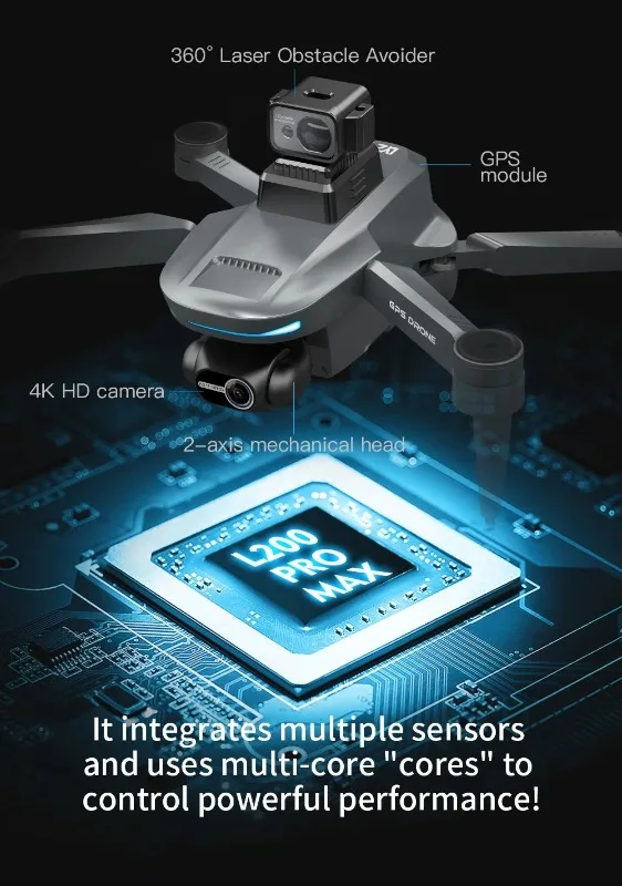 NEW L200 PRO MAX 2-Axis Gimbal 360° Drone 4K Professional Obstacle Avoidance Brushless Motor GPS Quadcopter FPV RC Drones Toy