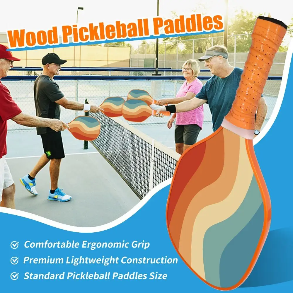 مضارب بيكلبول خشبية محمولة ملونة وقوية ومضرب بيكلبول هدايا مريحة مضارب اسكواش للأصدقاء والعائلة والأطفال