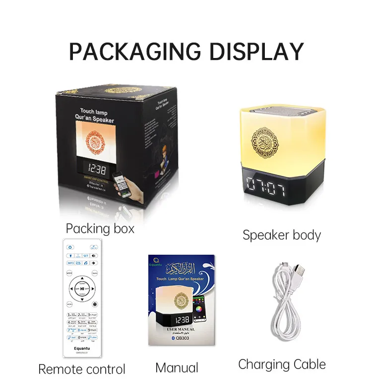 القرآن الكريم Mp3 مصباح رقمي يعمل باللمس ساعة LED مكبر صوت القرآن الكريم مشغل رمضان للمسلمين مع التحكم في التطبيق دروبشيبينغ