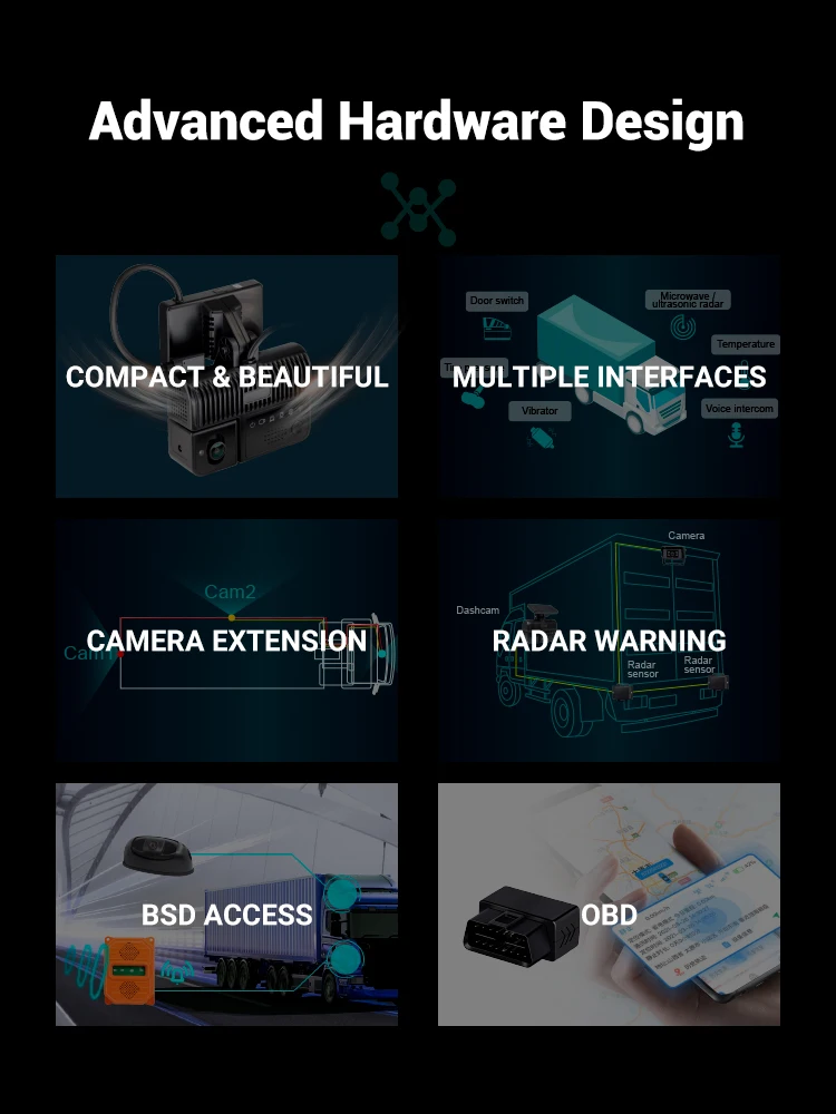 كاميرا STONKAM الذكية DMS ADAS 2K AI Dashcam WDR Dash Camera مع تسجيل للشاحنات والمركبات الكبيرة