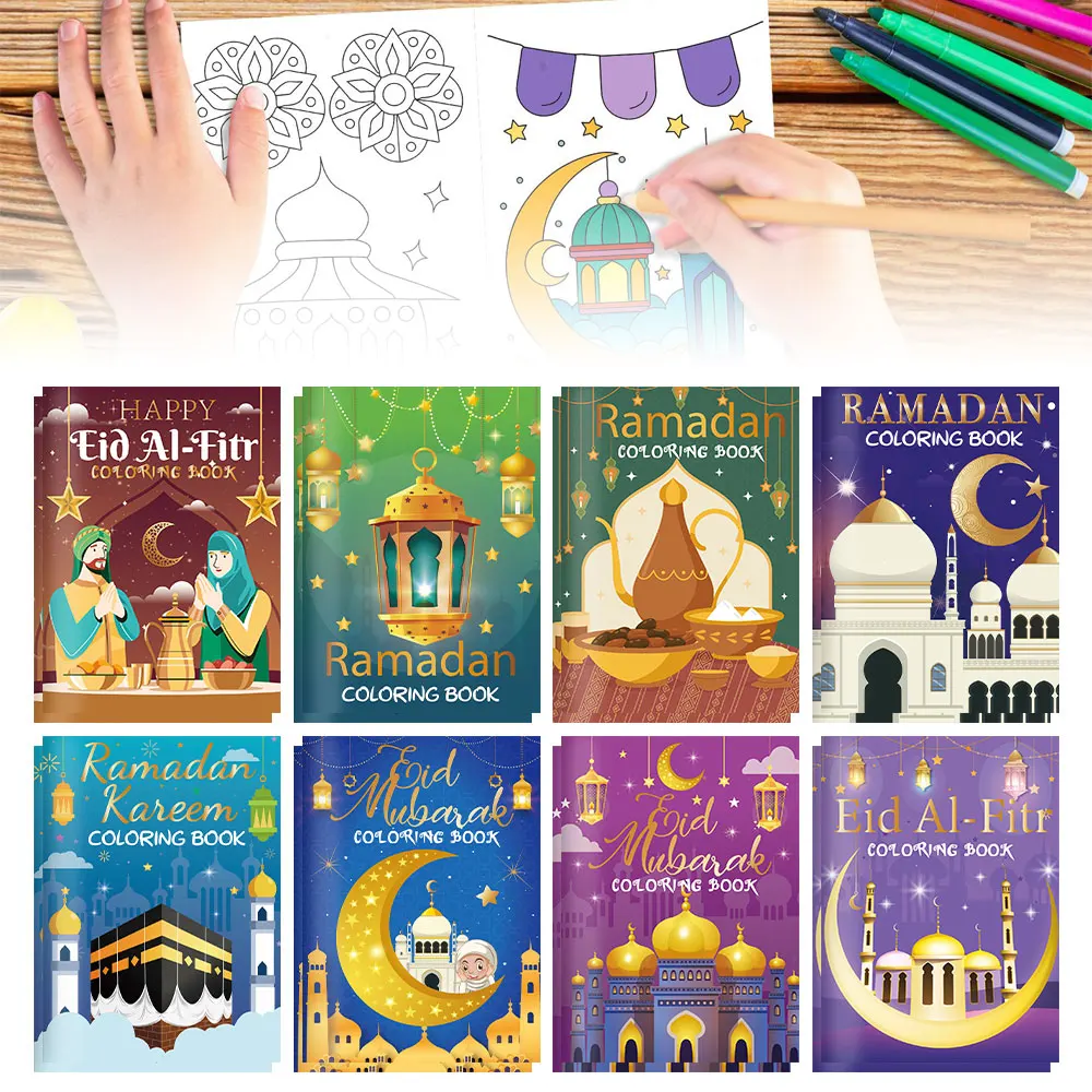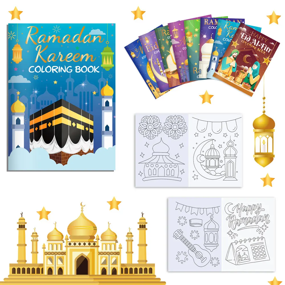 16 pcs Ramadan Eid Mubarak Party Mini Coloring Book Graffiti Painting Book for Muslim Party Supplies