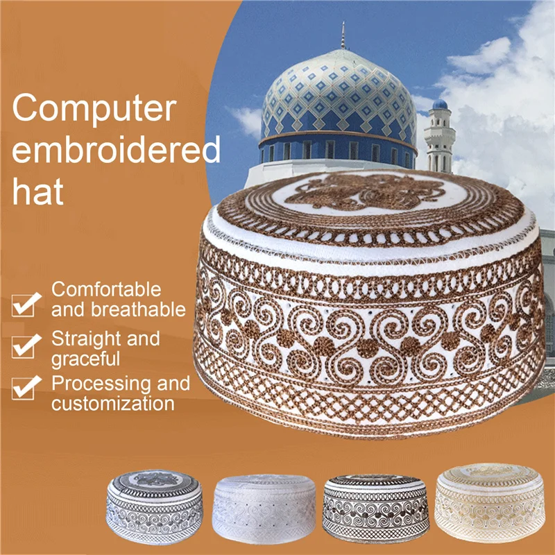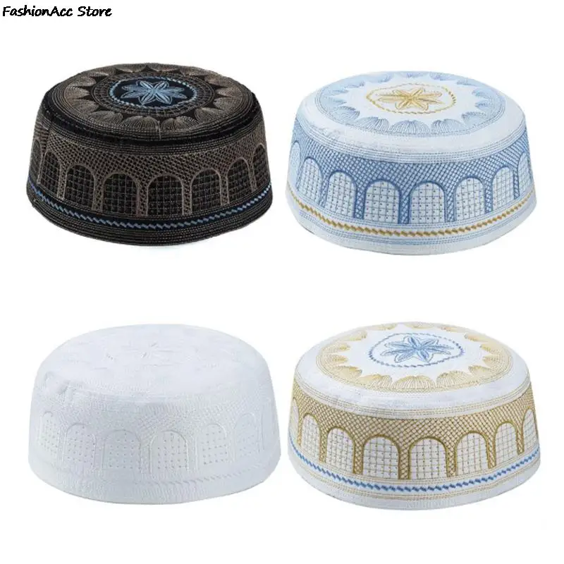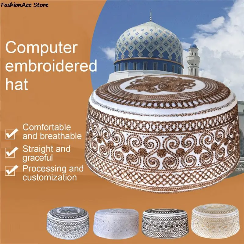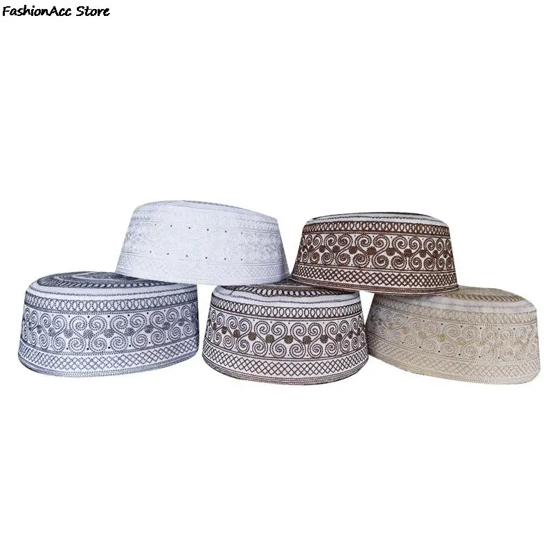 2021 muslim hats Cotton Embroidery Arab Men Prayer Hat Musliman Turban Man Hijab Bonnet Saudi Arabian Islam Jewish India Caps