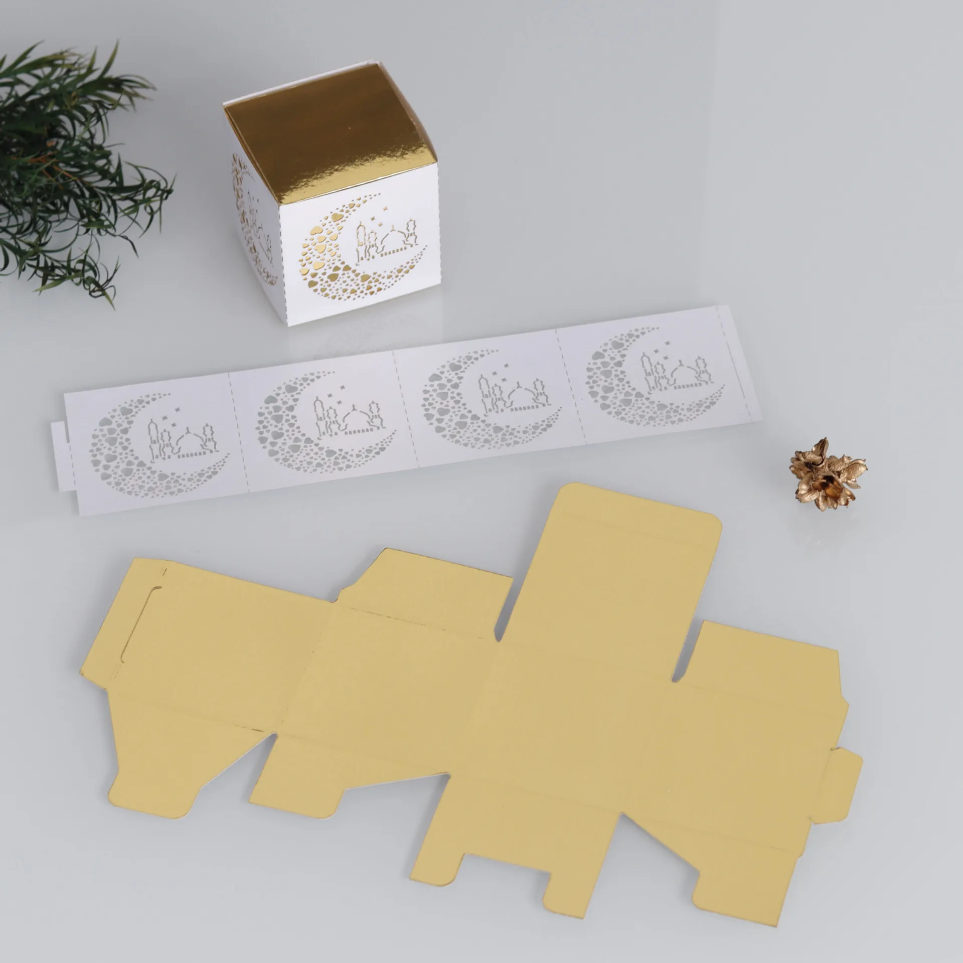 50PCS Eid Mubarak Star Moon Gift Box Candy Chocolate Packaging Box Ramadan Kareem Home Decor 2025 Islamic Muslim Party Supplies