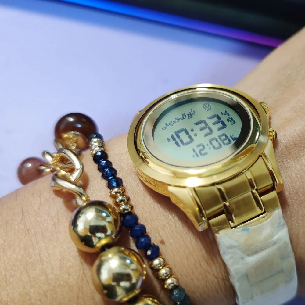 1 Piece Azan Muslim Watch for Couple Lover with Azan Alarm and Automatic Qibla Direction