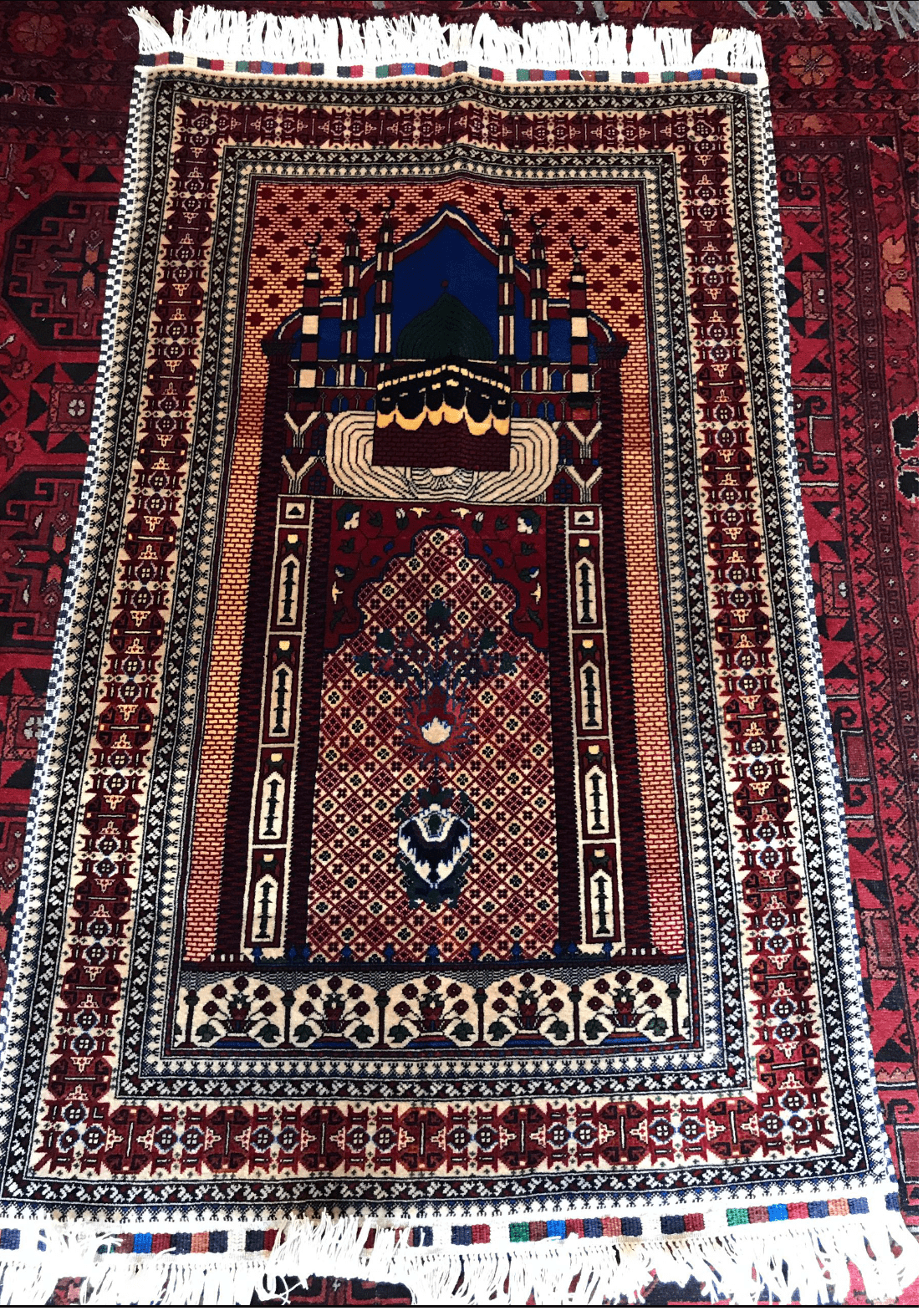 12.75 square feet prayer rug This handmade Afghan rug showcases traditional craftsmanship, preserving Afghan heritage and culture.