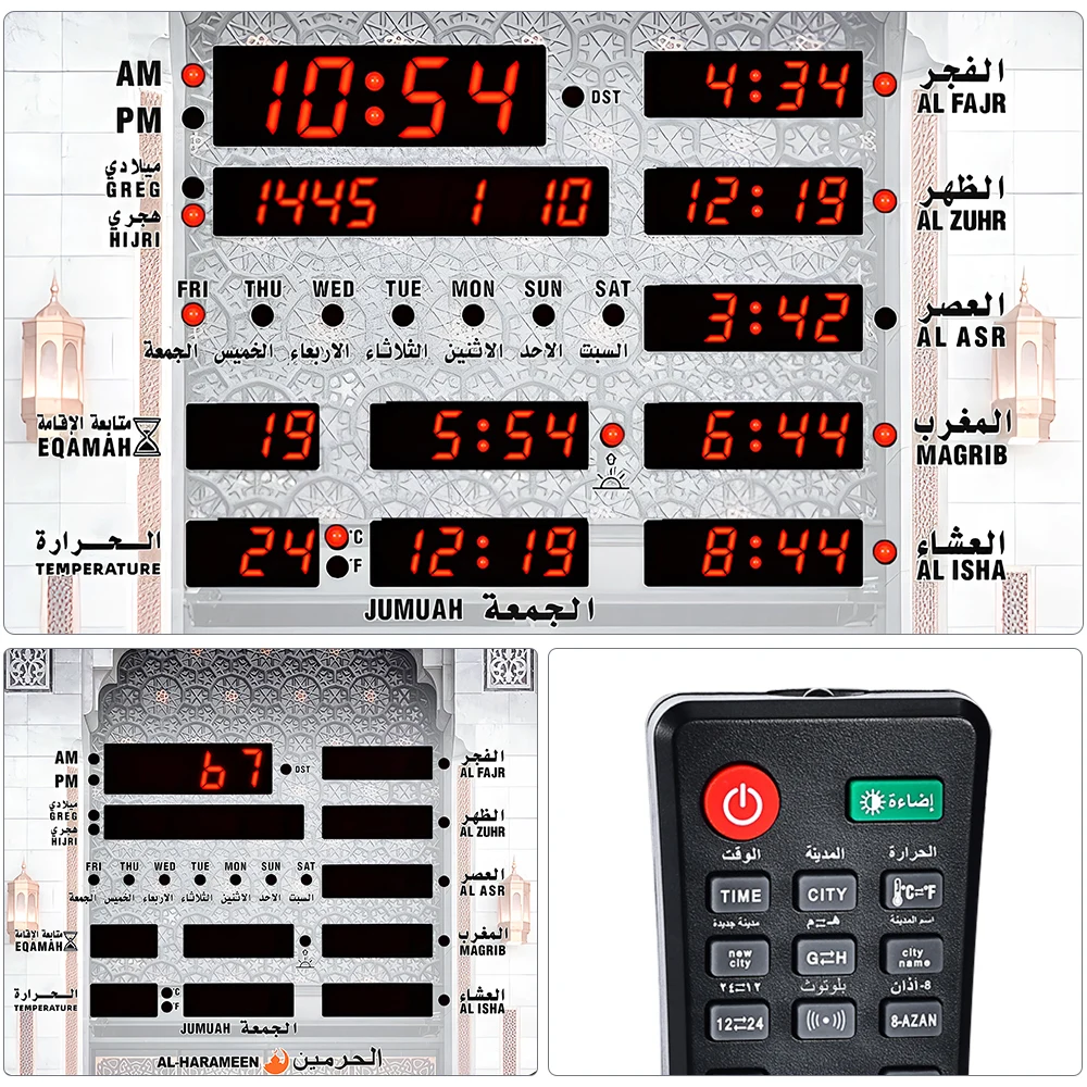 LED Digital Prayer Clock Azan Mosque Alarm Clock Islamic Muslim Wall Clock With Remote Control Calendar Ramadan Home Decoration