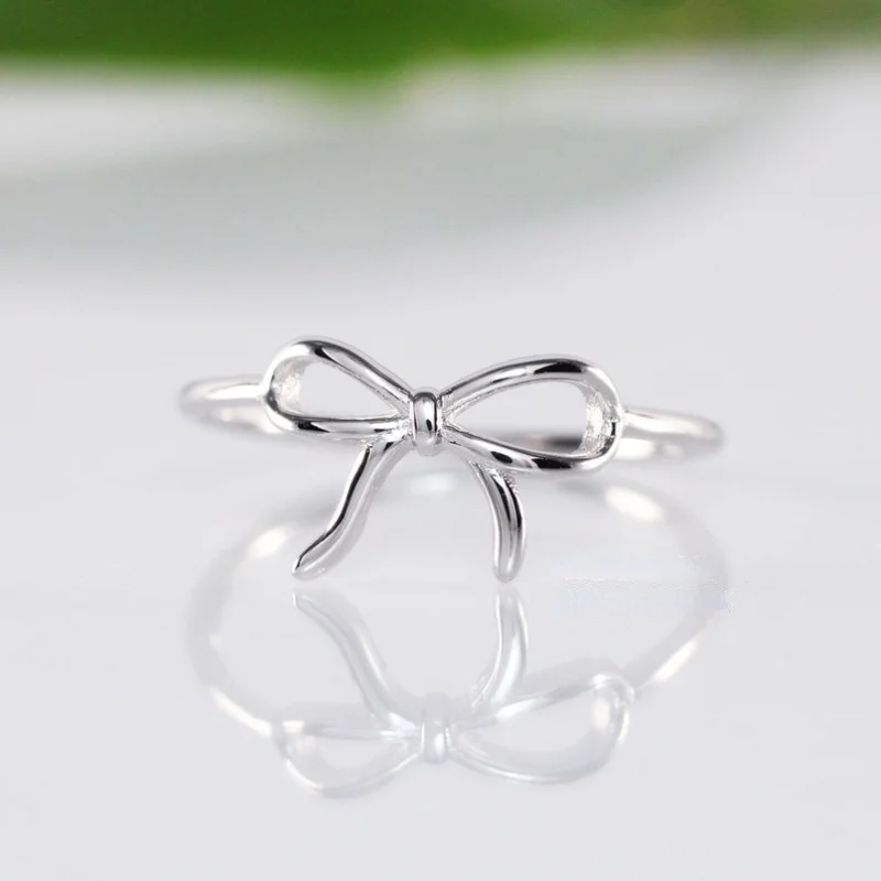 Luxury Fashionable Minimalist Bow Finger Silver Color Ring for Women Trendy Brand Design Party Fashion Girlfriend Gifts