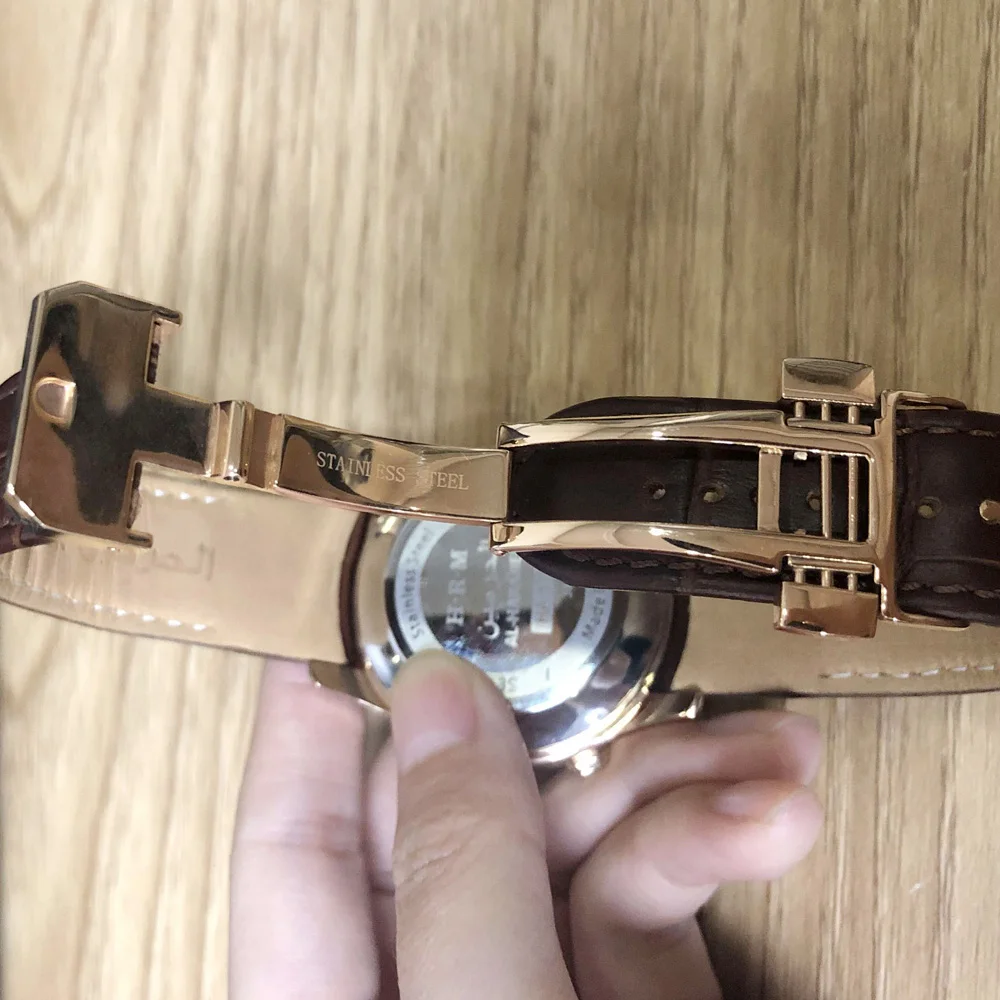 Support English and Arabic / Rose Gold 32mm Dial / Waterproof / Genuine Leather / Leather Deployment Buckle