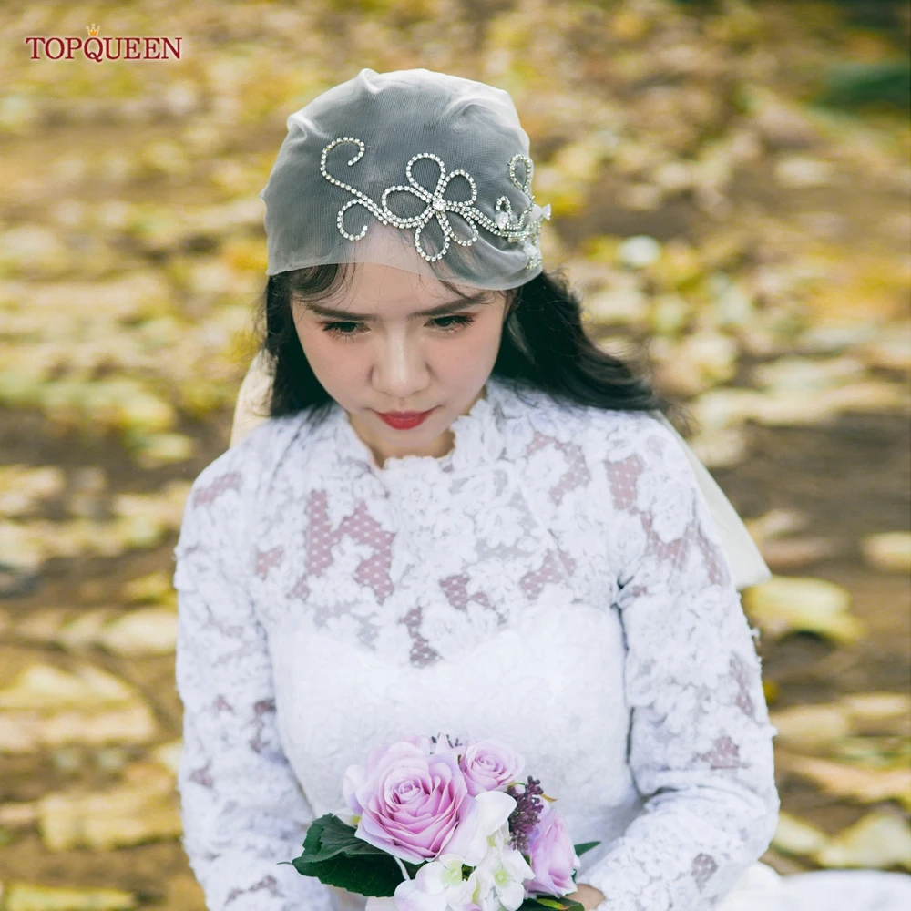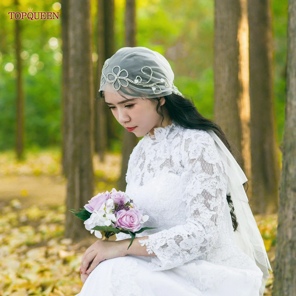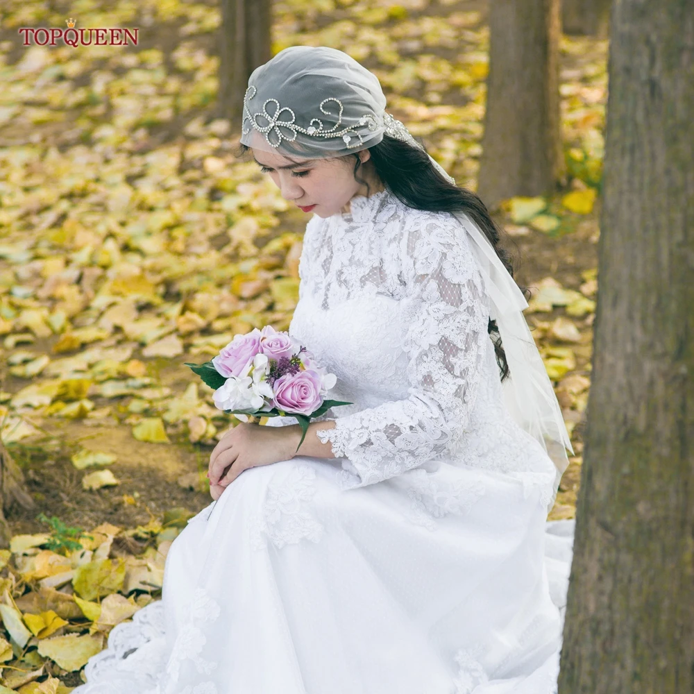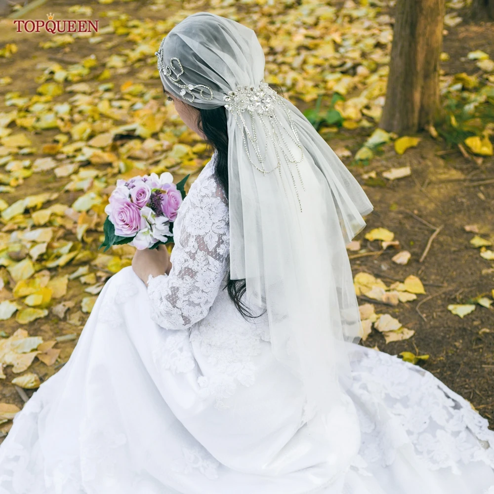 TOPQUEEN V44 Wedding Cap Veil Hat Veil for Bridal Muslim Hijab Short Veil Islamic Women’s High-end Photo Noivas Accessories VEU