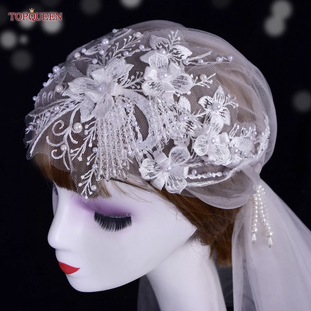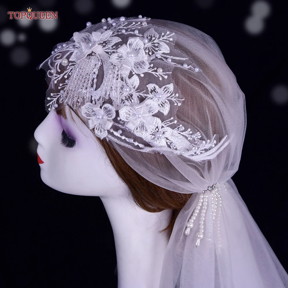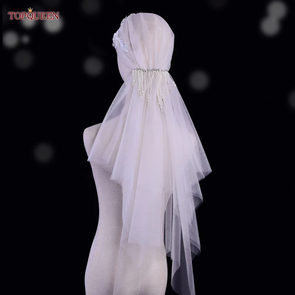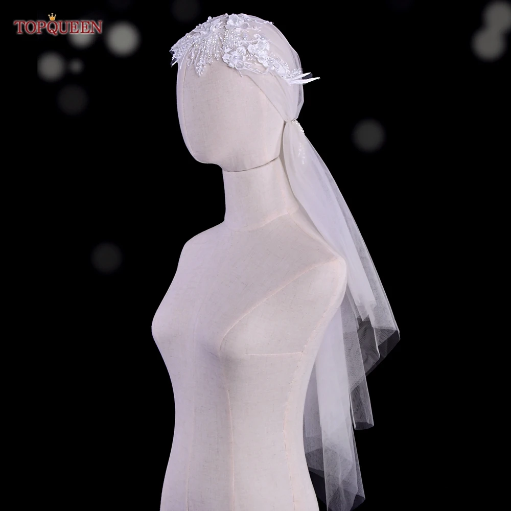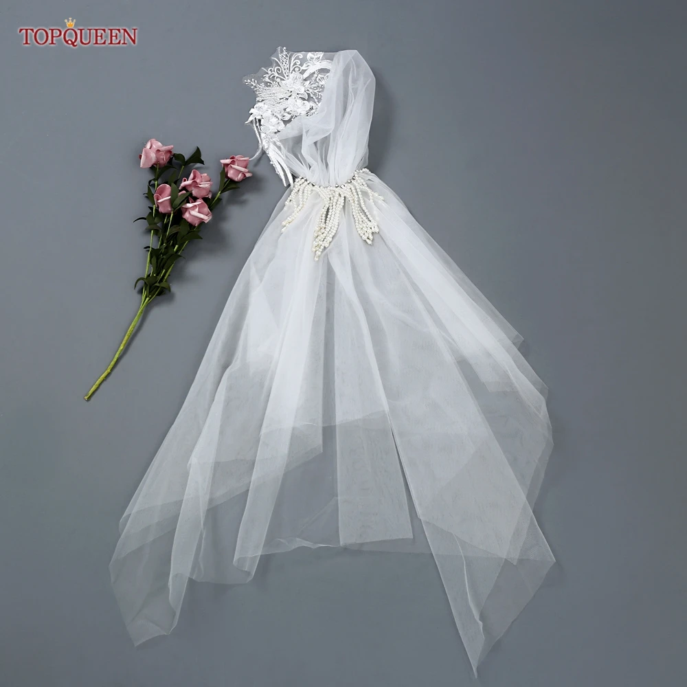 TOPQUEEN V44 Wedding Cap Veil Hat Veil for Bridal Muslim Hijab Short Veil Islamic Women’s High-end Photo Noivas Accessories VEU