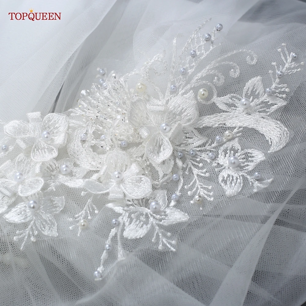 TOPQUEEN V44 Best Selling In Stock Simple Wedding Tulle White Ivory Bride Veil with Flower-Edge for Women Marriage Party