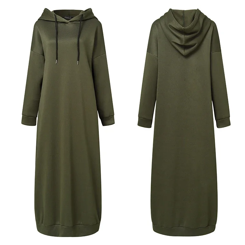 Women’s Muslim Hoodie Solid Color Long Sleeve Casual Loose Dress Maxi Abaya Ghirba Dress Long Sweatshirt Vestidos Robe